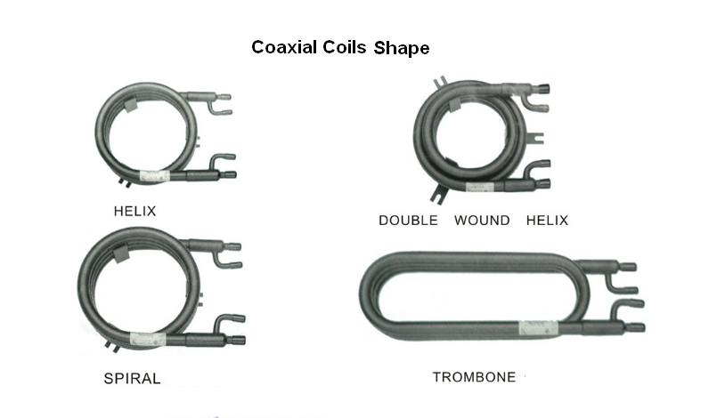 Coaxial Coils are specially designed for heat pump systems for maximum heat transfer with incorporation of the most advanced and innovative convoluted multi-head inner tube, use as water cooled condensers, water chiller and in water source heat pumps.They are designed for R22,R12,R410a and R407c refrigerant. The units are rated at standard ARI-conditions standard 450-79 using R22.